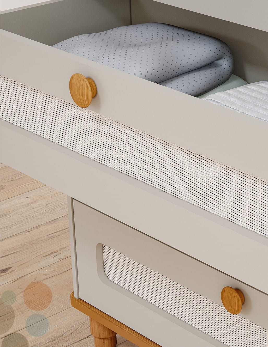 A Cômoda Alfajor é perfeita para mães que buscam um móvel que une organização, beleza e cuidado em cada detalhe, criando um espaço acolhedor e funcional para o bebê.