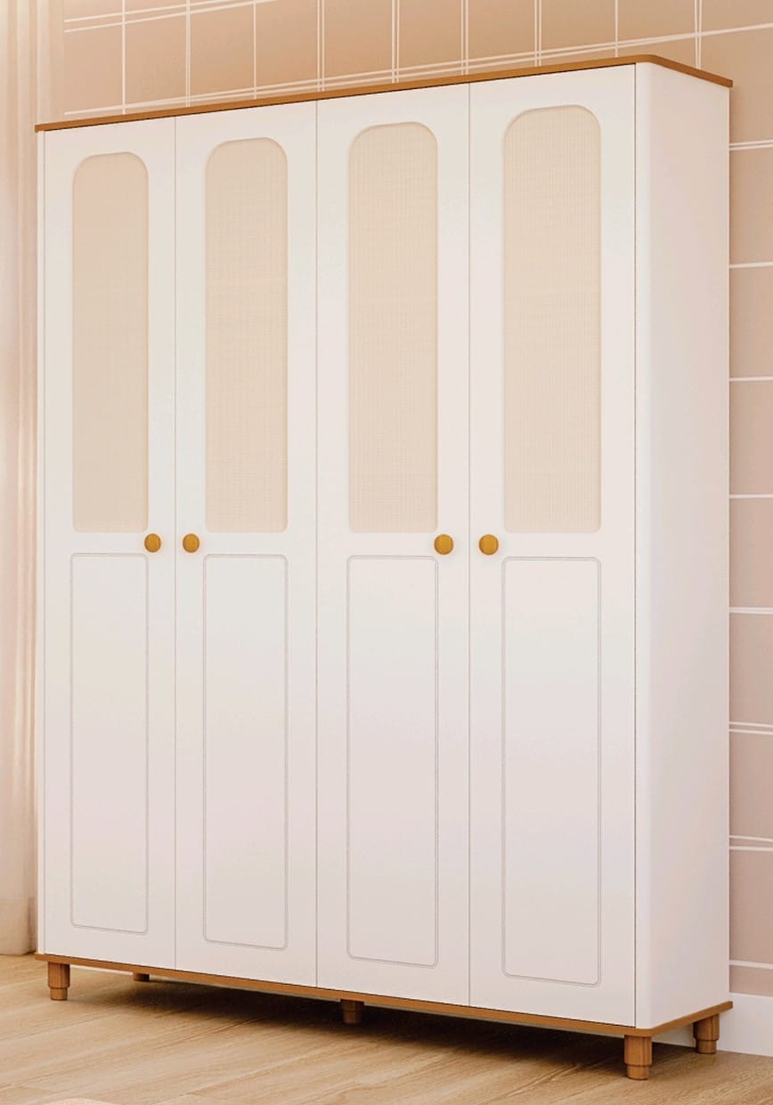 O Armário Tedy 04 Portas Peroba Móveis é feito em 100% MDF e possui um fino acabamento. Seu interior possui várias divisórias, o que o torna muito versátil. Móvel 100% MDF Rodapé reto (já incluso) Rodapé torneado (já incluso) Cabideiro metálico Pixadores plásticos Portas com PETG Cristal Correriças metálicas Disponível nas cores Branco e Branco com Carvalho MEDIDAS Altura: 1885 mm Largura: 1221 mm Profundidade: 415 mm