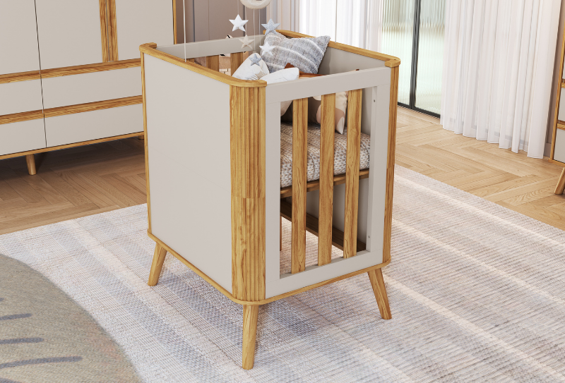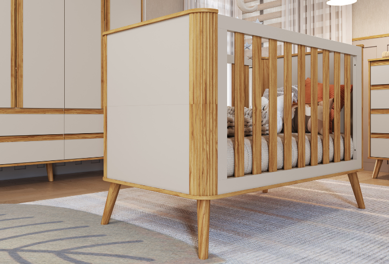 O Berço Retrô Peroba Móveis tem o Padrão Americano e a possibilidade de virar uma mini cama. Possui varal para mosquiteiro incluso e está disponível nas cores Branco Brilho, Branco Brilho/Carvalho e Branco/Cinza. Berço Padrão Americano O Berço tem a possibilidade de virar mini cama Base do colchão com 03 opções de altura Varal para mosquiteiro incluso Revestimento em tecido Courino Branco ou tecido Suede Disponível nas cores Branco Brilho e Branco com Carvalho Medidas Altura: 960 mm Largura: 1400 mm Profundidade: 763 mm