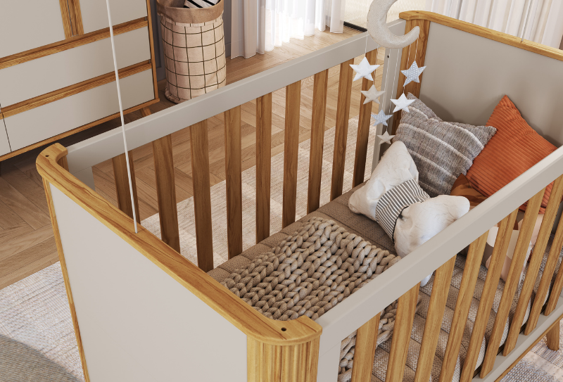 O Berço Harmonia Permóbili é fabricado em 100% de MDF e com certificação de segurança, garantindo que cada detalhe é produzido dentro das normas mais rigorosas para tranquilidade dos pequenos. E sabe o que é ainda mais incrível? Utiliza TINTAS ATÓXICAS, sempre pensando na saúde e segurança dos bebês. Além disso, conta com estrado de 2 regulagens de altura, 2 rodízios com trava e 2 sem trava para facilitar a movimentação, 2 grades fixas para segurança, e até varão mosquiteiro incluso para noites mais tranquilas. E quando o bebê crescer, ele se transforma em mini cama, com barra de proteção lateral inclusa. Medida do colchão: 0,70 x 1,30m. Conforto, segurança e versatilidade em um único berço! 850mm 1180mm 1350mm