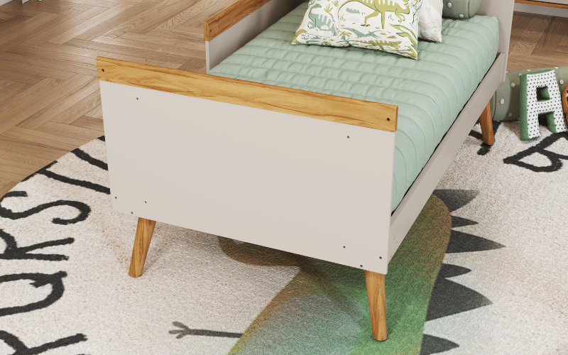 A cama Sol pode ser na cor branca ou branco com amêndoa (madeira). CARACTERÍSTICAS DA CAMA SOL: – 100% MDF; – Pintura atóxica; – Pés em MDF; – Bordas arredondadas; – Cama com estrados de madeira; – Suporte de apoio para o estrado; – Pintura branca em escala brilho; – Pintura amêndoa em escala semibrilho. Medidas da cama Sol: Largura: 193 cm; Altura: 64 cm; Profundidade: 96 cm.