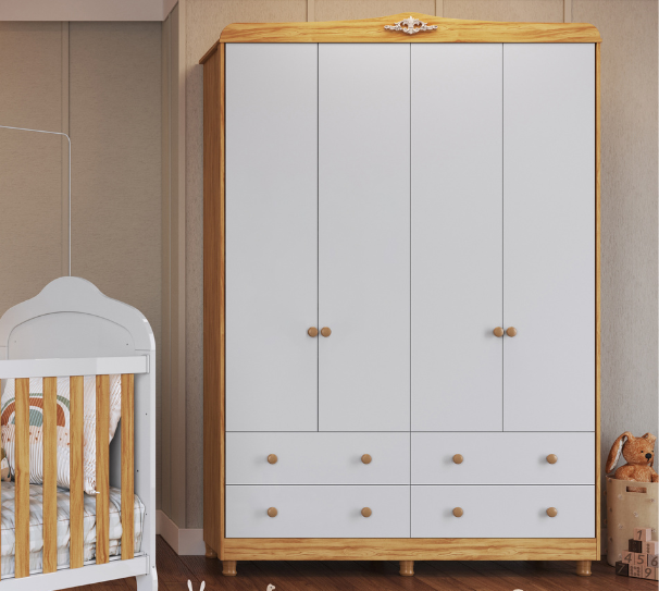 O Armário Tedy 04 Portas Peroba Móveis é feito em 100% MDF e possui um fino acabamento. Seu interior possui várias divisórias, o que o torna muito versátil. Móvel 100% MDF Rodapé reto (já incluso) Rodapé torneado (já incluso) Cabideiro metálico Pixadores plásticos Portas com PETG Cristal Correriças metálicas Disponível nas cores Branco e Branco com Carvalho MEDIDAS Altura: 1885 mm Largura: 1221 mm Profundidade: 415 mm