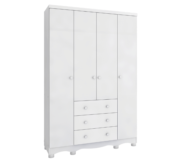 O Armário Tedy 04 Portas Peroba Móveis é feito em 100% MDF e possui um fino acabamento. Seu interior possui várias divisórias, o que o torna muito versátil. Móvel 100% MDF Rodapé reto (já incluso) Rodapé torneado (já incluso) Cabideiro metálico Pixadores plásticos Portas com PETG Cristal Correriças metálicas Disponível nas cores Branco e Branco com Carvalho MEDIDAS Altura: 1885 mm Largura: 1221 mm Profundidade: 415 mm