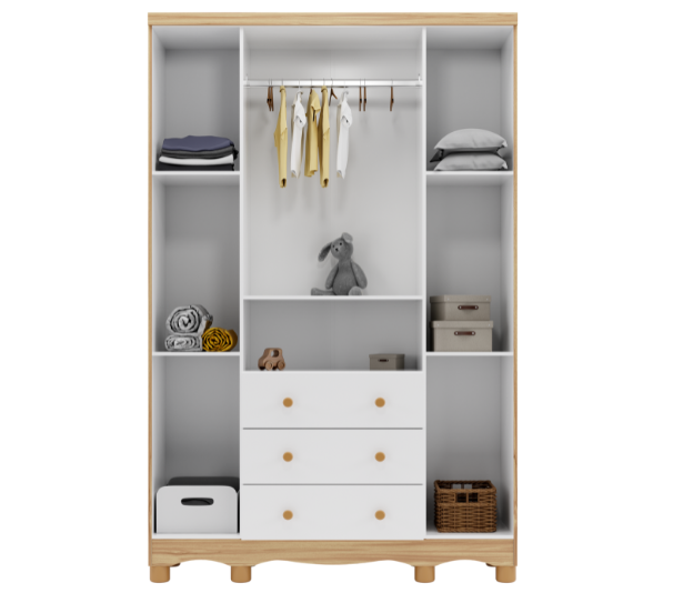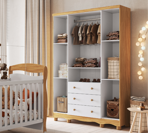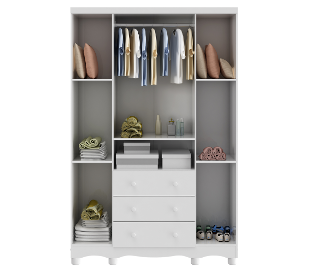 Dimensões(Cm): Comprimento(Profundidade): 76cm x Largura: 133cm x Altura: 95cm CARACTERÍSTICAS DE MÓVEIS Tipo de Estrutura do Móvel - 100% MDF Tipo de Pintura - UV Tipo de Acabamento da Pintura - Semi Brilho - Atóxica Tipo de puxador - MDF Quantidade de Prateleiras - 5 Prateleiras Quantidade de Gavetas - 2 Gavetas Diferenciais da Gaveta - c/ Corrediças Telescópicas Quantidade de Portas - 3 Portas de Abrir Garantia - 3 meses BENEFÍCIOS DE MÓVEIS Certificação de Qualidade de Móveis - Qualidade Aprovada 01 - CARACTERÍSTICAS E BENEFÍCIOS GERAIS Quantidade de Portas - 3 Portas de Abrir Quantidade de Gavetas - 2 Gavetas Quantidade de Prateleiras - 5 Material da Estrutura - MDF Tipo de Pintura - Ultravioleta Garantia - 3 Meses Certificação de Qualidade - Certificação de Qualidade Aprovada 04 - CARACTERÍSTICAS E BENEFÍCIOS DOS MÓVEIS DE QUARTO Tipo de Cabideiro - Aéreo Tamanho do Guarda-Roupa - Infantil