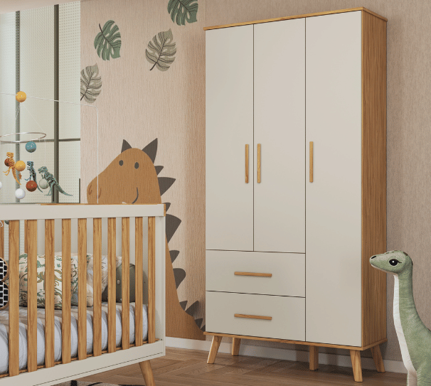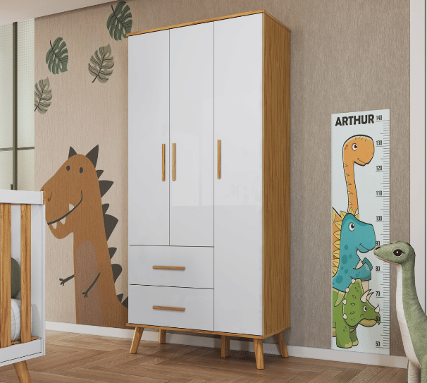 Dimensões(Cm): Comprimento(Profundidade): 76cm x Largura: 133cm x Altura: 95cm CARACTERÍSTICAS DE MÓVEIS Tipo de Estrutura do Móvel - 100% MDF Tipo de Pintura - UV Tipo de Acabamento da Pintura - Semi Brilho - Atóxica Tipo de puxador - MDF Quantidade de Prateleiras - 5 Prateleiras Quantidade de Gavetas - 2 Gavetas Diferenciais da Gaveta - c/ Corrediças Telescópicas Quantidade de Portas - 3 Portas de Abrir Garantia - 3 meses BENEFÍCIOS DE MÓVEIS Certificação de Qualidade de Móveis - Qualidade Aprovada 01 - CARACTERÍSTICAS E BENEFÍCIOS GERAIS Quantidade de Portas - 3 Portas de Abrir Quantidade de Gavetas - 2 Gavetas Quantidade de Prateleiras - 5 Material da Estrutura - MDF Tipo de Pintura - Ultravioleta Garantia - 3 Meses Certificação de Qualidade - Certificação de Qualidade Aprovada 04 - CARACTERÍSTICAS E BENEFÍCIOS DOS MÓVEIS DE QUARTO Tipo de Cabideiro - Aéreo Tamanho do Guarda-Roupa - Infantil