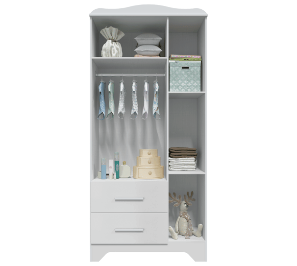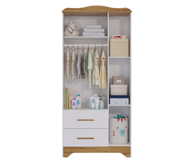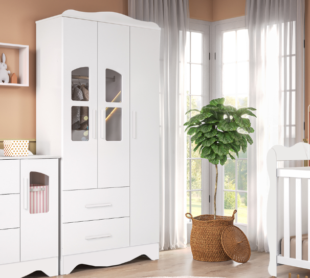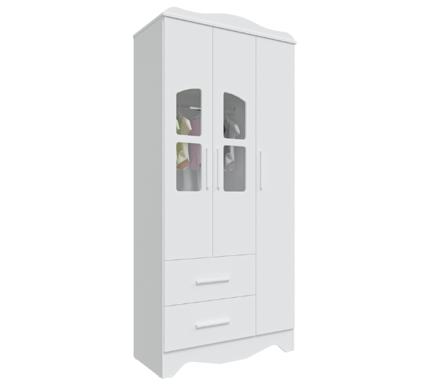 Dimensões(Cm): Comprimento(Profundidade): 76cm x Largura: 133cm x Altura: 95cm CARACTERÍSTICAS DE MÓVEIS Tipo de Estrutura do Móvel - 100% MDF Tipo de Pintura - UV Tipo de Acabamento da Pintura - Semi Brilho - Atóxica Tipo de puxador - MDF Quantidade de Prateleiras - 5 Prateleiras Quantidade de Gavetas - 2 Gavetas Diferenciais da Gaveta - c/ Corrediças Telescópicas Quantidade de Portas - 3 Portas de Abrir Garantia - 3 meses BENEFÍCIOS DE MÓVEIS Certificação de Qualidade de Móveis - Qualidade Aprovada 01 - CARACTERÍSTICAS E BENEFÍCIOS GERAIS Quantidade de Portas - 3 Portas de Abrir Quantidade de Gavetas - 2 Gavetas Quantidade de Prateleiras - 5 Material da Estrutura - MDF Tipo de Pintura - Ultravioleta Garantia - 3 Meses Certificação de Qualidade - Certificação de Qualidade Aprovada 04 - CARACTERÍSTICAS E BENEFÍCIOS DOS MÓVEIS DE QUARTO Tipo de Cabideiro - Aéreo Tamanho do Guarda-Roupa - Infantil