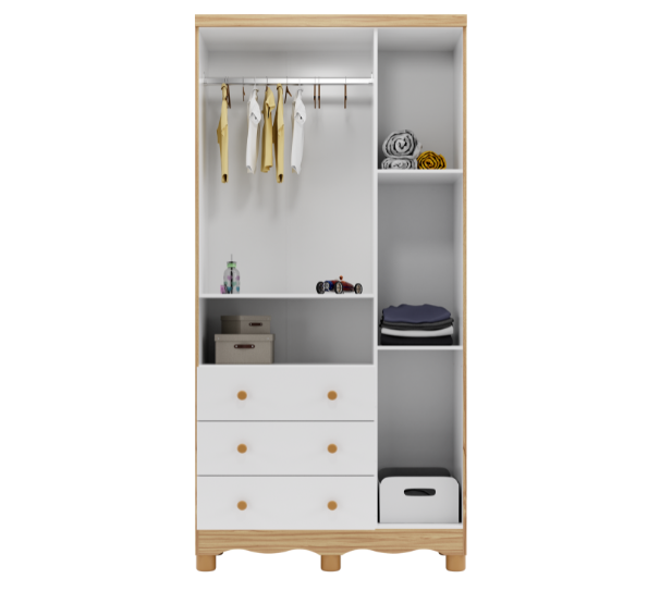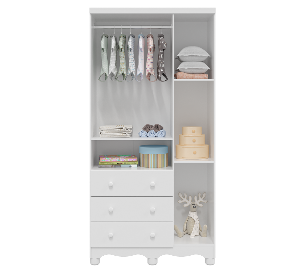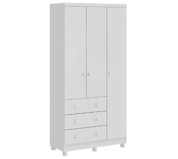 Dimensões(Cm): Comprimento(Profundidade): 76cm x Largura: 133cm x Altura: 95cm CARACTERÍSTICAS DE MÓVEIS Tipo de Estrutura do Móvel - 100% MDF Tipo de Pintura - UV Tipo de Acabamento da Pintura - Semi Brilho - Atóxica Tipo de puxador - MDF Quantidade de Prateleiras - 5 Prateleiras Quantidade de Gavetas - 2 Gavetas Diferenciais da Gaveta - c/ Corrediças Telescópicas Quantidade de Portas - 3 Portas de Abrir Garantia - 3 meses BENEFÍCIOS DE MÓVEIS Certificação de Qualidade de Móveis - Qualidade Aprovada 01 - CARACTERÍSTICAS E BENEFÍCIOS GERAIS Quantidade de Portas - 3 Portas de Abrir Quantidade de Gavetas - 2 Gavetas Quantidade de Prateleiras - 5 Material da Estrutura - MDF Tipo de Pintura - Ultravioleta Garantia - 3 Meses Certificação de Qualidade - Certificação de Qualidade Aprovada 04 - CARACTERÍSTICAS E BENEFÍCIOS DOS MÓVEIS DE QUARTO Tipo de Cabideiro - Aéreo Tamanho do Guarda-Roupa - Infantil