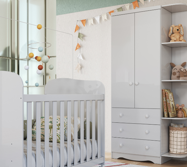 Descrição O kit é composto por; 01 Berço Guti Berço Padrão Americano Fabricado em MDF; Bordas Laqueadas; Pés em MDF; Pode ser transformado em mini cama ,escrivaninha, mini sofa , mesinha. Portaria INMETRO no 143/2021 OCP 0070 Registro no 003742/2022 Medidas do colchão recomendado LARG 0,70cm X COMP 130cm X ALT Máxima 0,12cm; Colchão não acompanha; Medidas do móvel montado ALT 104cm X COMP 138cm X LARG 76cm; 01 Cômoda Guti Fabricado em MDF ; 03 gavetas; 01 porta; Corrediças telescópicas; Tampo com bordas laqueadas; Puxadores em MDF; Pintura atóxica, acabamento brilho; Medidas do móvel montado AL 90cm X LARG 97cm X PROF 45cm; 01 Armário Guti Armário Guti 4 portas ; Produzido em MDF ; corrediças telescópicas; Puxador em MDF; Ótimo espaço interno; Pintura atóxica, acabamento brilho; Medidas do móvel montado ALT 210cm X LARG 127cm X PROF 45cm; Atenção: Por favor, confira as dimensões do produto e certifique-se de que estão adequadas aos elevadores, portas e corredores do local de entrega, pois não fazemos a montagem, desmontagem do produto e/ou portas e janelas, transporte pela escada ou içamento pelo lado de fora do prédio. Montagem e possíveis trocas de peças responsabilidade do comprador; Fabricante Moveis Peroba; Garantia 3 meses contra defeito de fabricação.
