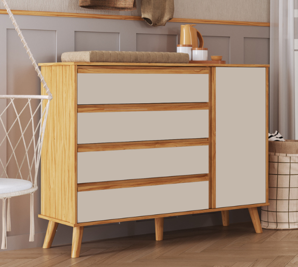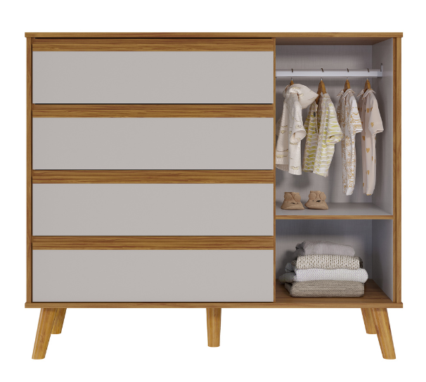 A Cômoda Tedy Peroba Movéis deixa qualquer quarto de bebê lindo com sua pintura laqueada. Produto 100% MDF, disponível nas versões Branco e Branco com Carvalho. Tampo com bordas laqueadas Gavetas com corrediças metálicas Pés plásticos já inclusos Disponível nas versões Branco e Branco com Carvalho. 01 cabideiro e 01 prateleira internos Medidas Altura: 880mm Largura: 953mm Profundidade: 420mm