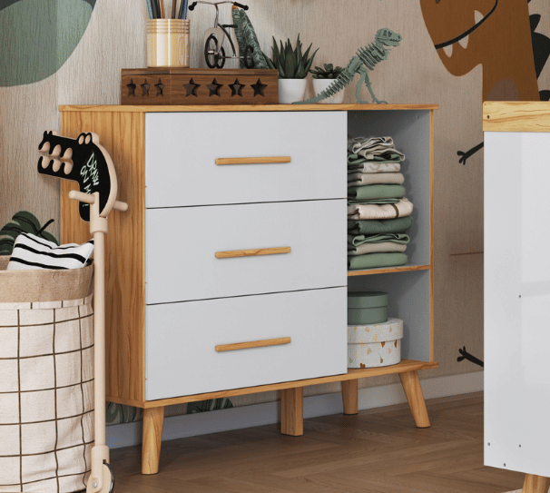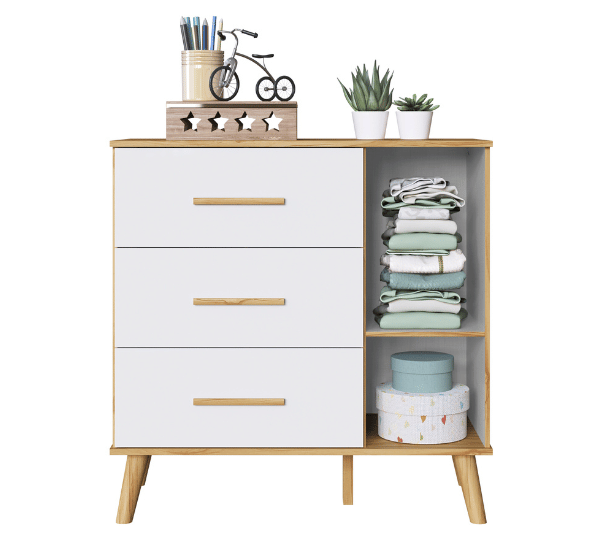 A Cômoda Tedy Peroba Movéis deixa qualquer quarto de bebê lindo com sua pintura laqueada. Produto 100% MDF, disponível nas versões Branco e Branco com Carvalho. Tampo com bordas laqueadas Gavetas com corrediças metálicas Pés plásticos já inclusos Disponível nas versões Branco e Branco com Carvalho. 01 cabideiro e 01 prateleira internos Medidas Altura: 880mm Largura: 953mm Profundidade: 420mm