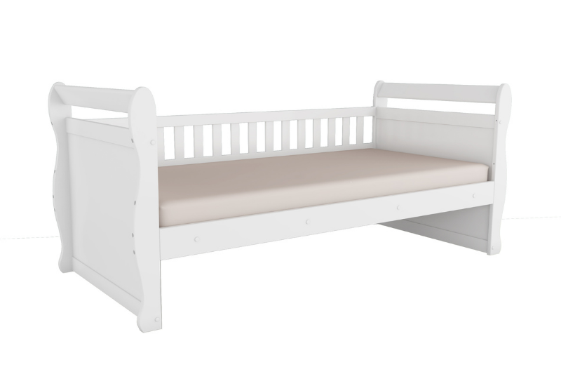A cama Sol pode ser na cor branca ou branco com amêndoa (madeira). CARACTERÍSTICAS DA CAMA SOL: – 100% MDF; – Pintura atóxica; – Pés em MDF; – Bordas arredondadas; – Cama com estrados de madeira; – Suporte de apoio para o estrado; – Pintura branca em escala brilho; – Pintura amêndoa em escala semibrilho. Medidas da cama Sol: Largura: 193 cm; Altura: 64 cm; Profundidade: 96 cm.